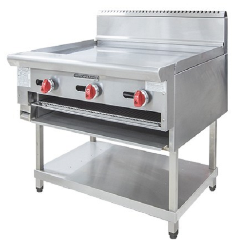 The Combination Griddle & Salamander Series is designed for heavy duty use and performance in commercial kitchens. Featuring a highly polished 19mm thick griddle plate over salamander.