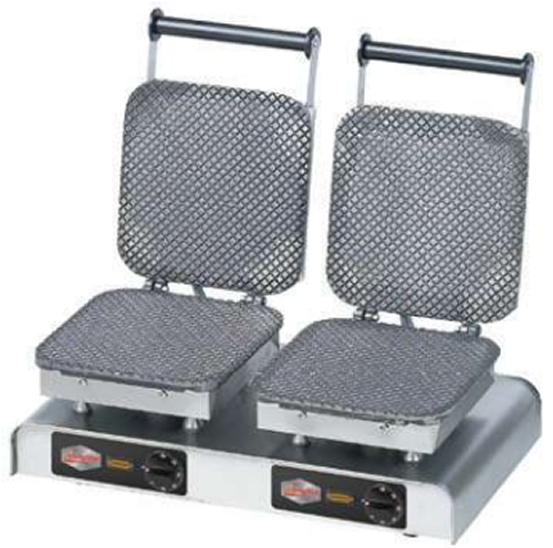 The American breakfast waffle is typically topped with bacon and maple syrup. This is a full meal size waffle.