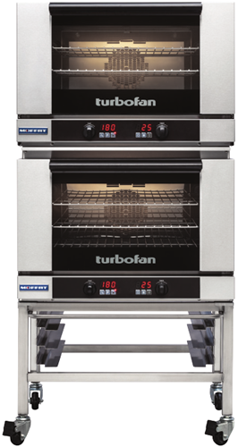 Turbofan E27D3/2C – Full Size Tray Digital Electric Convection Ovens Double Stacked on a Stainless Steel Base Stand