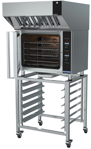 Turbofan E31D4 – Full Size Tray Digital Electric Convection Oven with Halton Ventless Hood on a Stainless Steel Stand