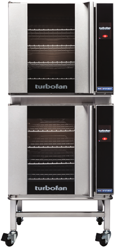 Turbofan E32T4/2C – 2 x E32T4 Electric Convection Ovens Double Stacked with castor base stand